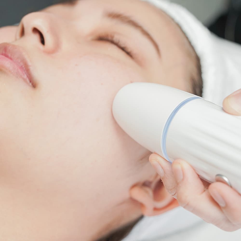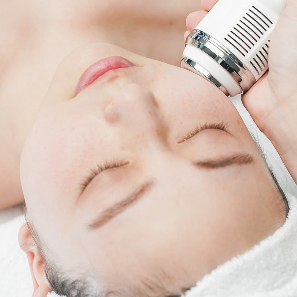ピーリング・美容導入をおこなうマシンで、クレンジング・ピーリング・毛穴吸引・保湿・美容液導入・毛穴引締めなどの美容トリートメントが施術可能。ご自宅ではとれない毛穴の奥の汚れを除去しながら保湿成分を含んだ美容液を肌に浸透させます。