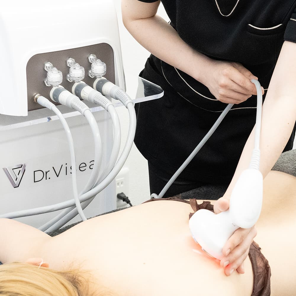 ハイフォーカス・イオン導入・EMSの3種機能の同時出力が可能。美しさと安全性にこだわり、日本初のハイフォーカス・イオン導入・EMSの3種機能の同時出力が可能となりました。従来の「焦点式ハイフォーカス」とは異なる、痛みを感じにくい「蓄熱式ハイフォーカス」を採用しております。さらに独自開発バスト専用のヘッドを搭載しており、バストアップ効果も期待できます。