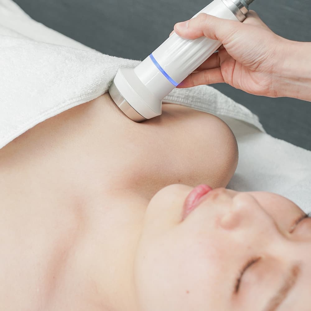 くすみ・シミ・シワ・ニキビなどの施術可能。エステを超えたニキビケア・シミケアが可能に!高出力プラズマが皮膚の奥まで働きかけ、滅菌・活性化の効果でニキビ、アトピーのケアをするプラズマミスト。美容液を塗布し薬剤を皮下深部まで届け、肌への浸透をさらに高める強力超音波。表皮にあるくすみや汚れ、角質を繰り返しシミを垢化し痛くなく安全にシミケア。